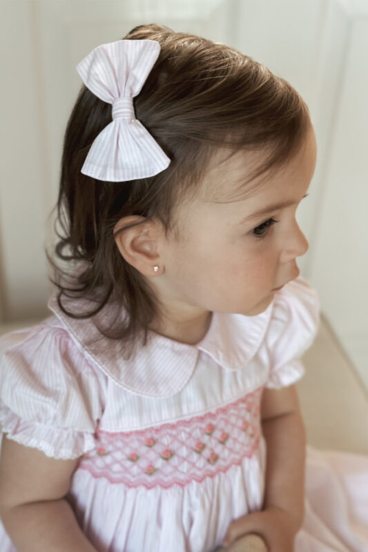 Light Pink Striped Bow-Hair Clip