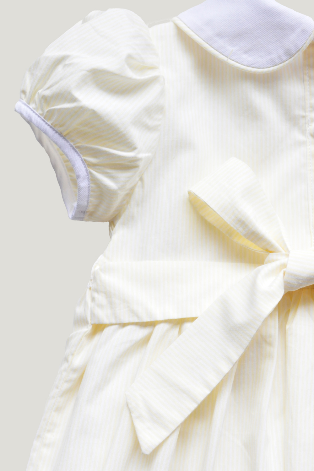 Designed with love and care, this timeless, elegant Pastel Yellow Striped Hand-Smocked dress is a must-have for your child’s wardrobe. With its sunshine hues, this dress will bring out the innocence in your child and allow them to explore freely.